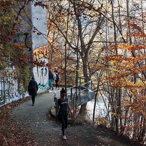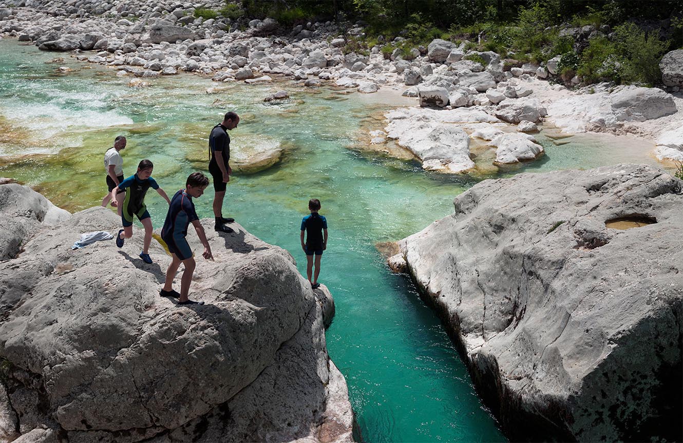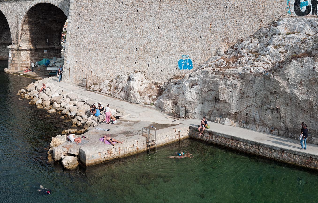 Zones where fluidity meets solid ground can complement these ideas or compound them. They contain an ambivalent sense of time. No one is being hurried through these scenes, butthey're also not putting down roots. I like to think of these as floating rather than fleeting moments.