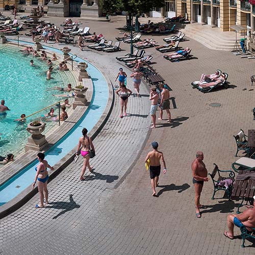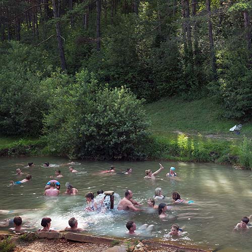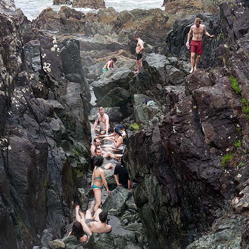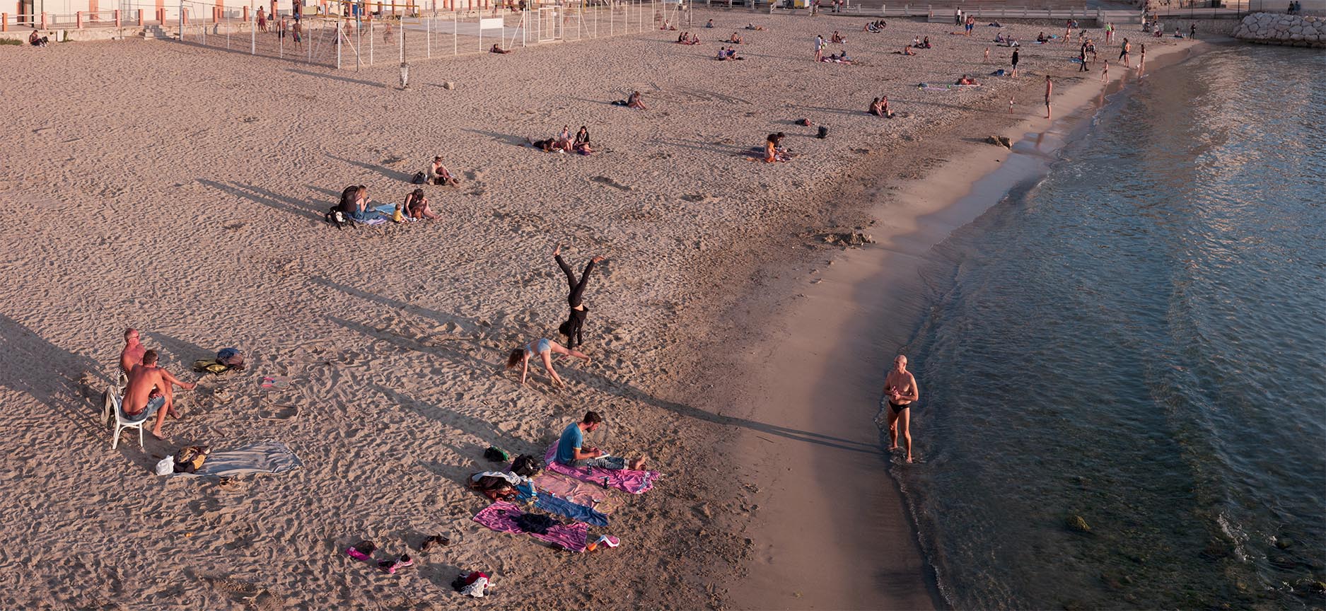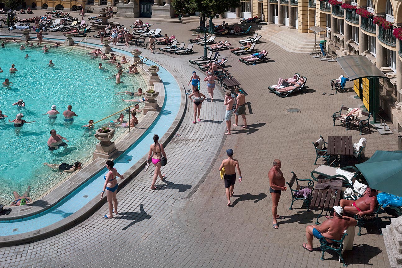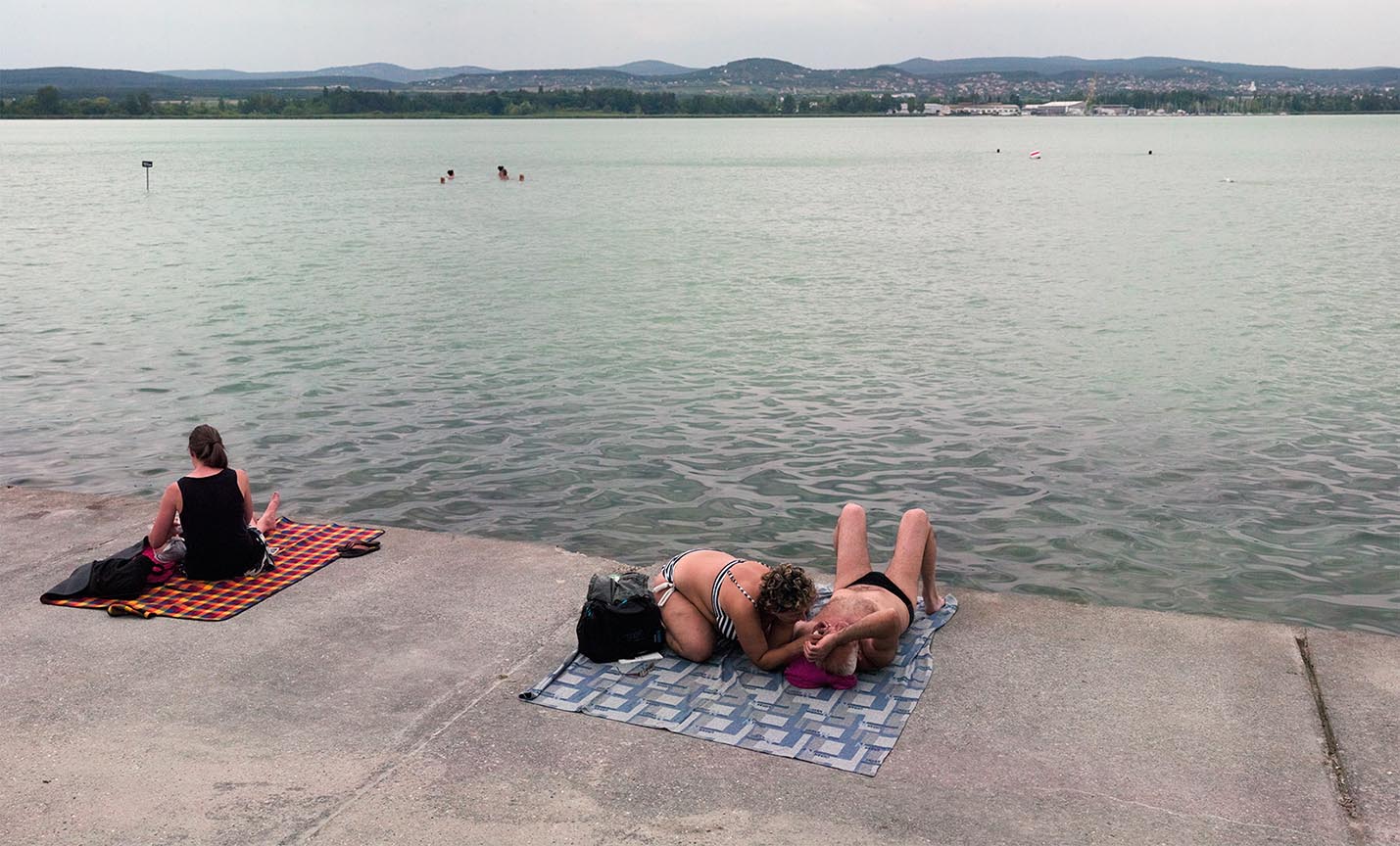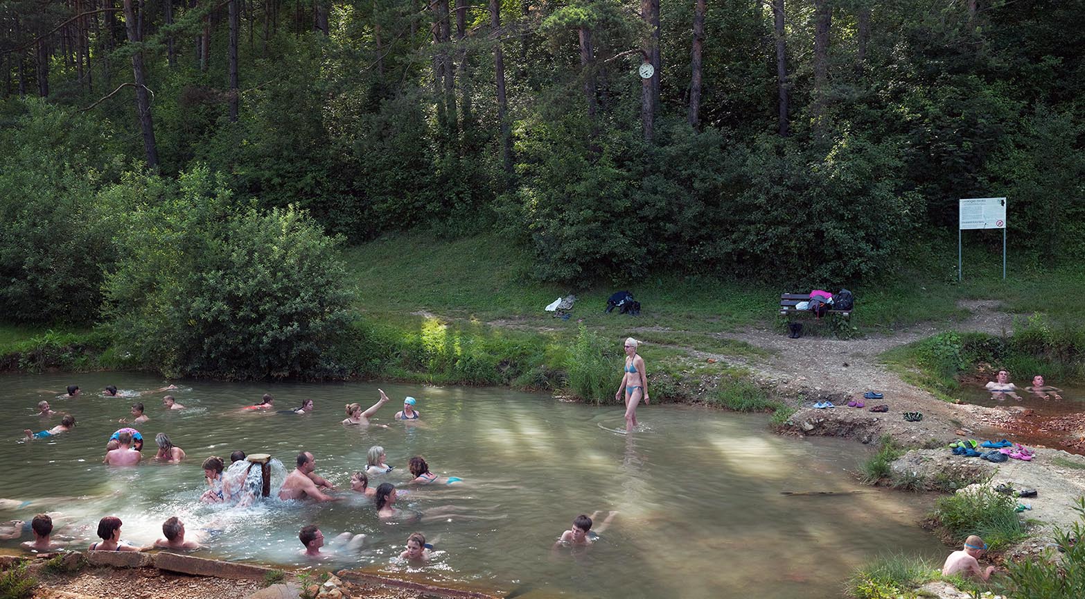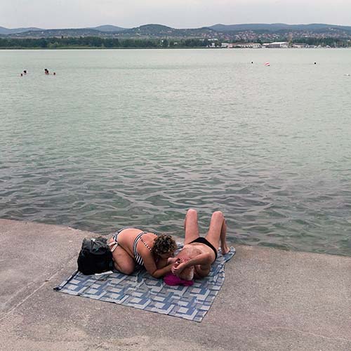 At Water shows people along shorelines, riverbanks, pools, etc. They are splashing about or staying dry. They're taking it all in or simply performing life with little regard for the backdrop. I like water and its connotations. I like its states and shapes, how it separates height from depth. It can enhance the drama of a scene with vastness or mystery or reflected light, or it can render it somewhat comic. Water is not a floor to stand upon but a surface to sink into.