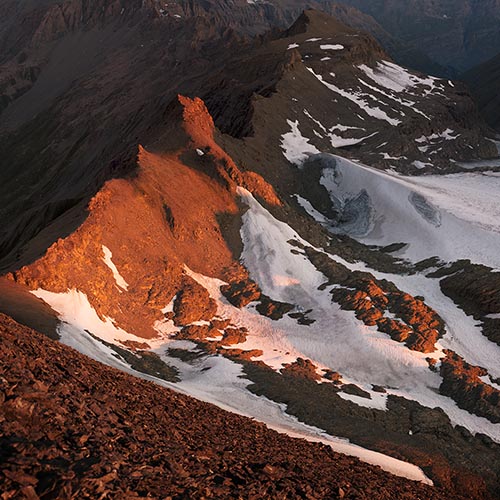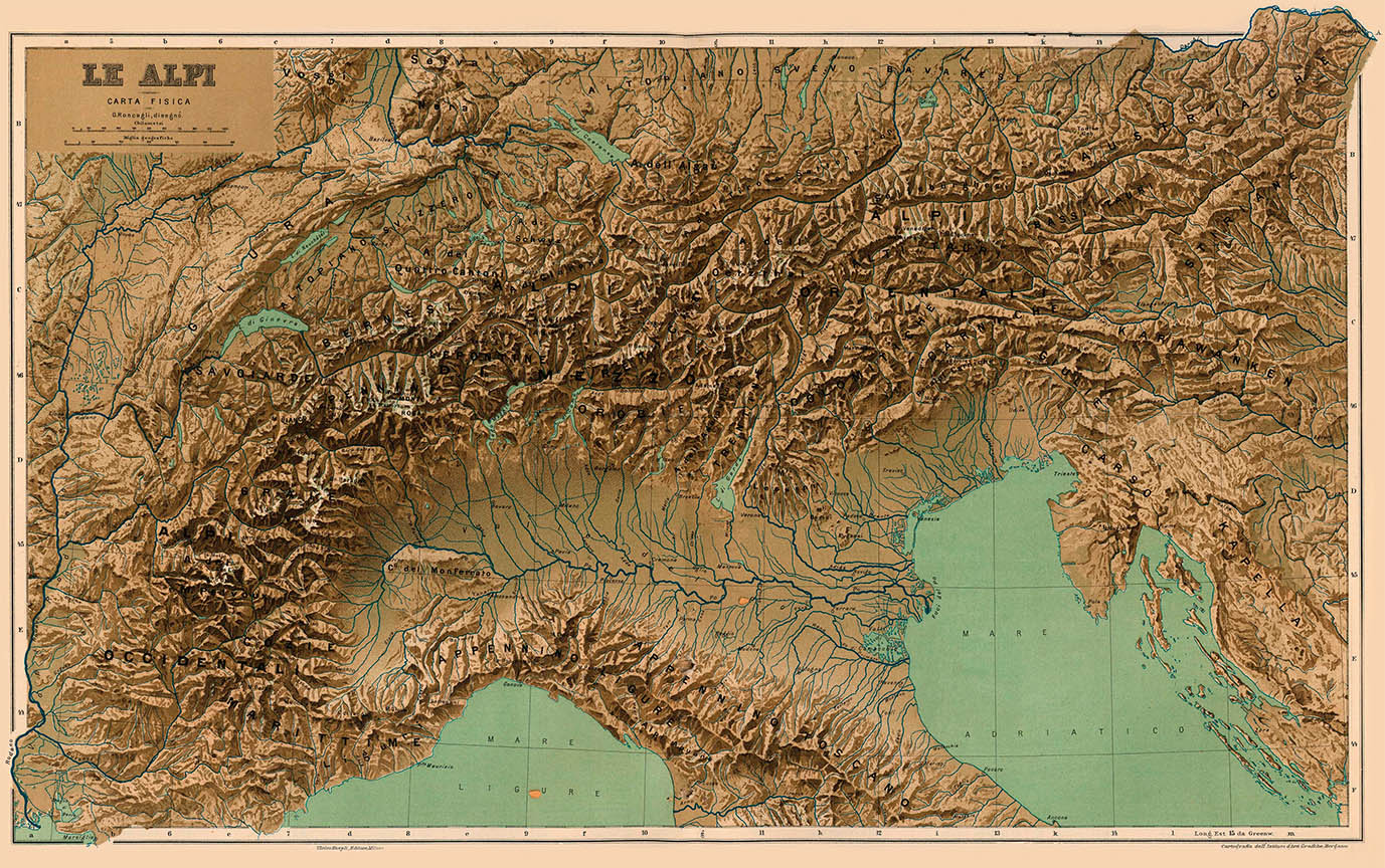 As alpine permafrost retreats to higher colder elevations terrain softens and crumbles in its wake. Boundaries distinguishing Alps nations no longer adhere to the ridge lines and drainage basins they were drawn along. In response Switzerland, Italy, Austria and France have rendered sections of their borders fluid. In a few decades when the mountains re-stabilize new boundaries will be surveyed to honour their various treaties. This willingness to re-imagine conventions of sovereignty is one scant silver lining of glacial extinction. It’s an elegant view of statecraft for an era increasingly defined by climate change. “Frontière", “frontiera", and “Grenze" are French, Italian and German-language words for “border”.