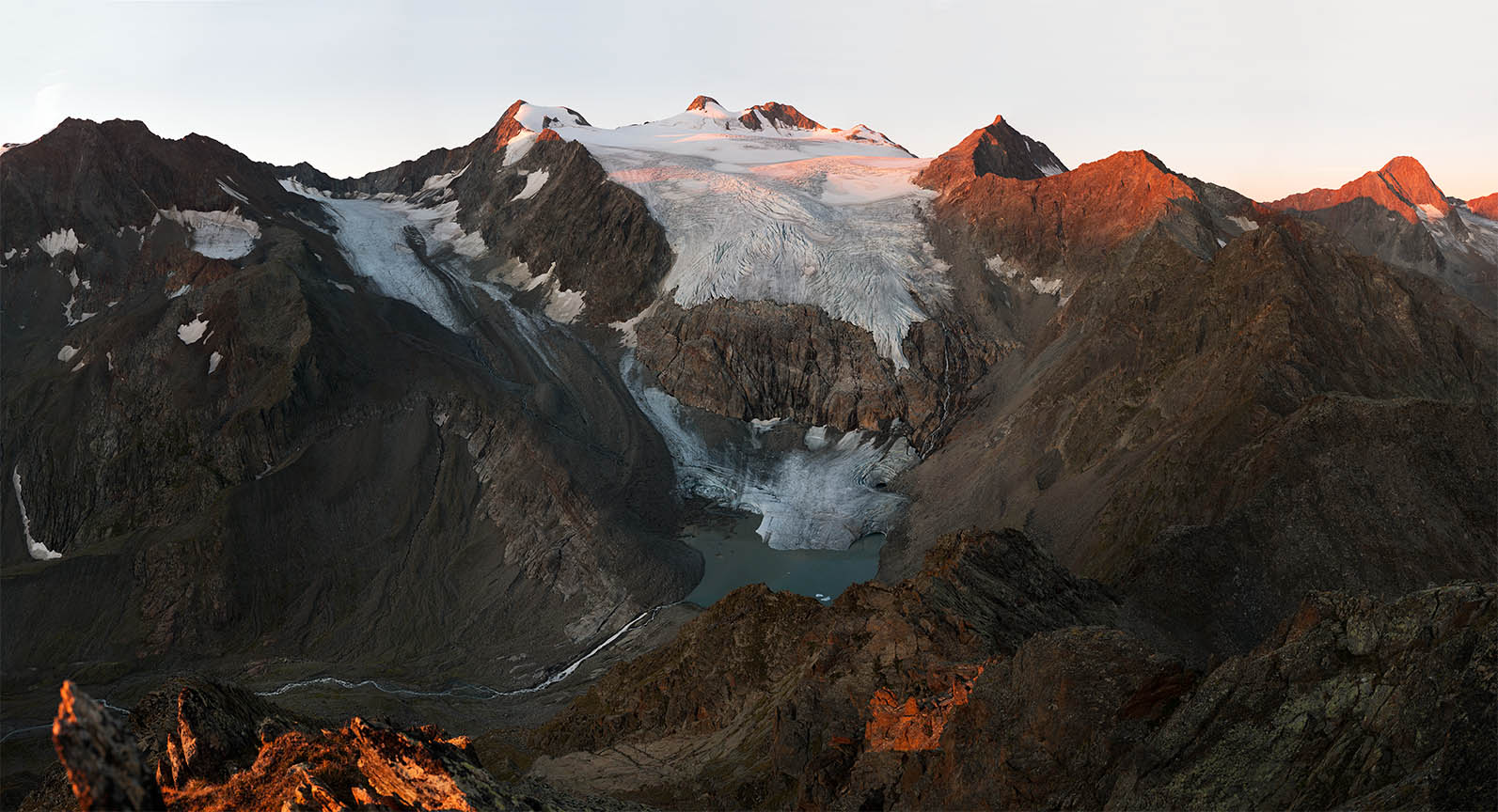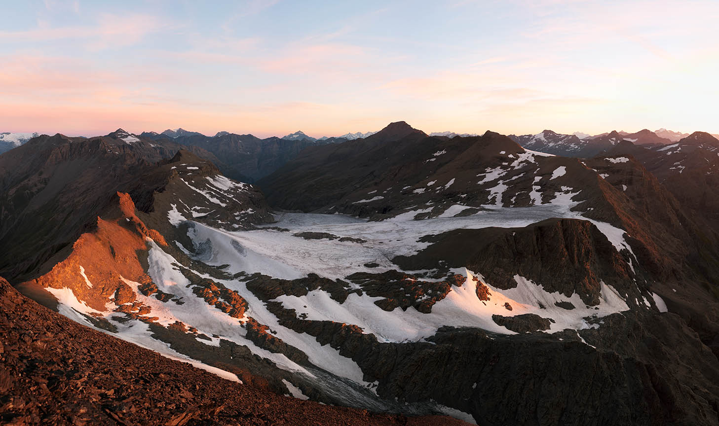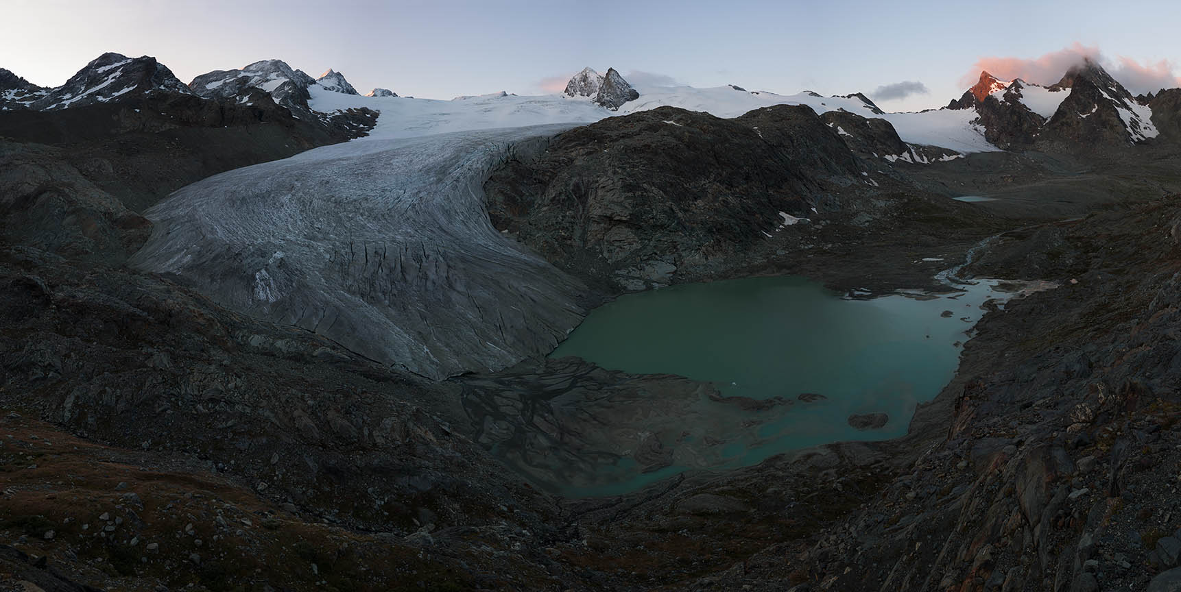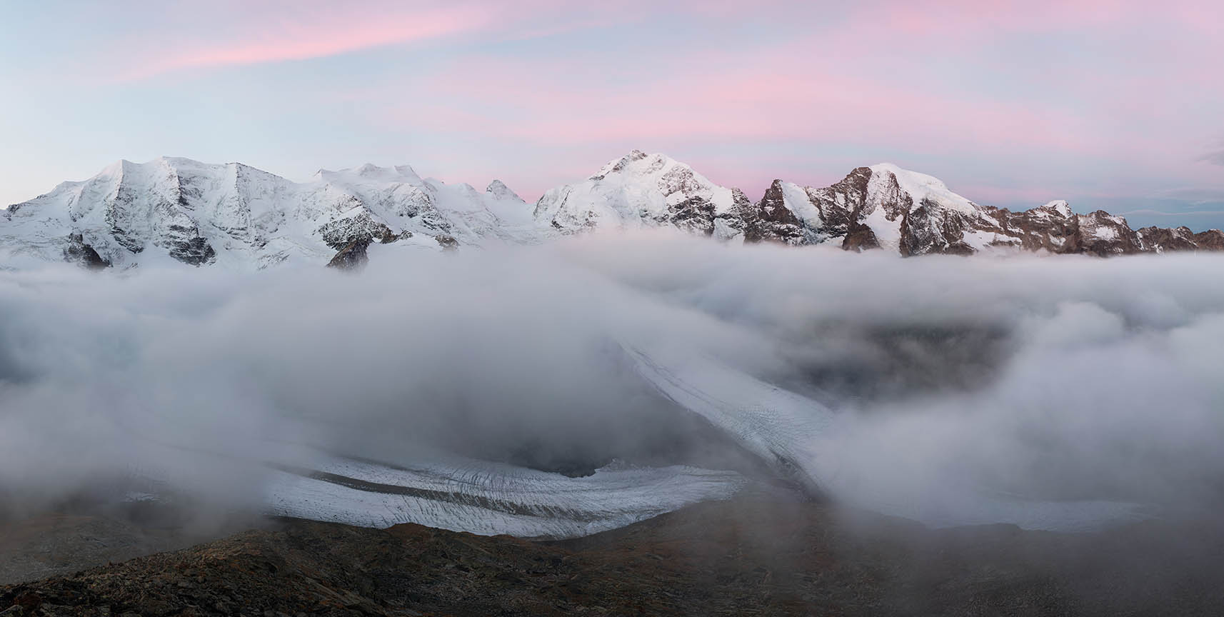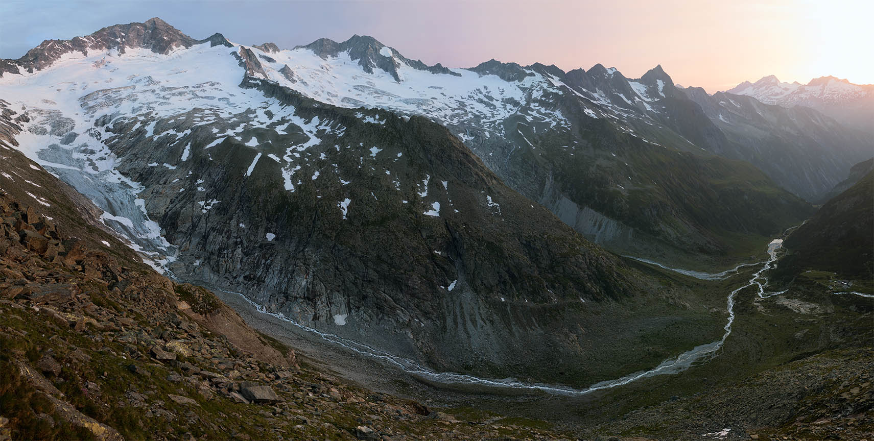 Unlike Sella’s glass plate contact prints, these works are large and colourful. Built from dozens of hi-res captures, they’re as related to Google Earth's contiguous satellite tapestries. They tilt skywards and into valleys. They pan up to 200˚ yet can pass as “straight”. They’re impossibly vast for traditional photographic looking. Some are actually reduced to exhibition scale. I see them as virtual contact prints. From a distance they’re expansive. Up close they’re startlingly intricate. Thes works are for leaning into as well as stepping back from.They're for being disoriented when tiny mountaineers or a bivouac reset the scale abruptly.