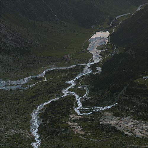 As temperatures rise permafrost retreats to higher latitudes and elevations. Terrain softens and crumbles in its wake. The Alps no longer adhere to boundaries surveyed a century ago. In response Switzerland, Italy, Austria and France have rendered their borders fluid in sections. These landscapes contain the aftermath of our industrial age as well as avant-garde views of statecraft for an era increasingly defined by climate change. "Frontière", "frontiera" and "Grenze" are French, Italian and German-language words for border.