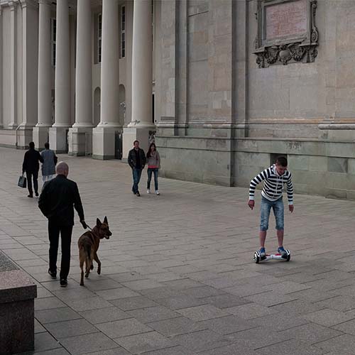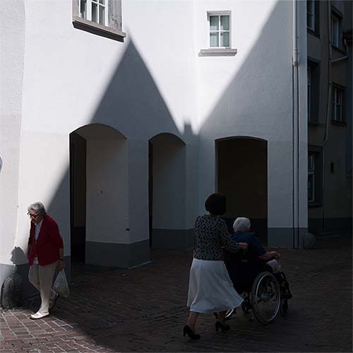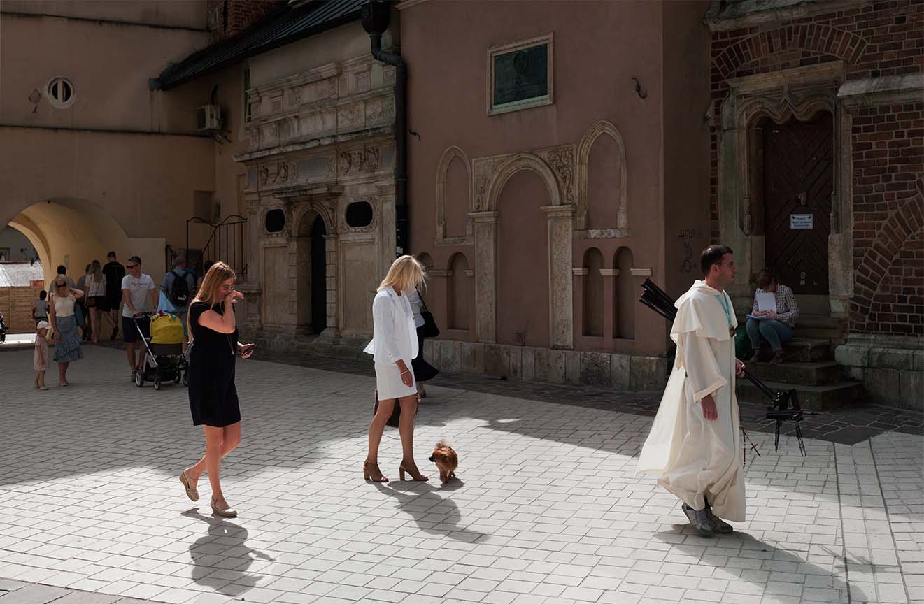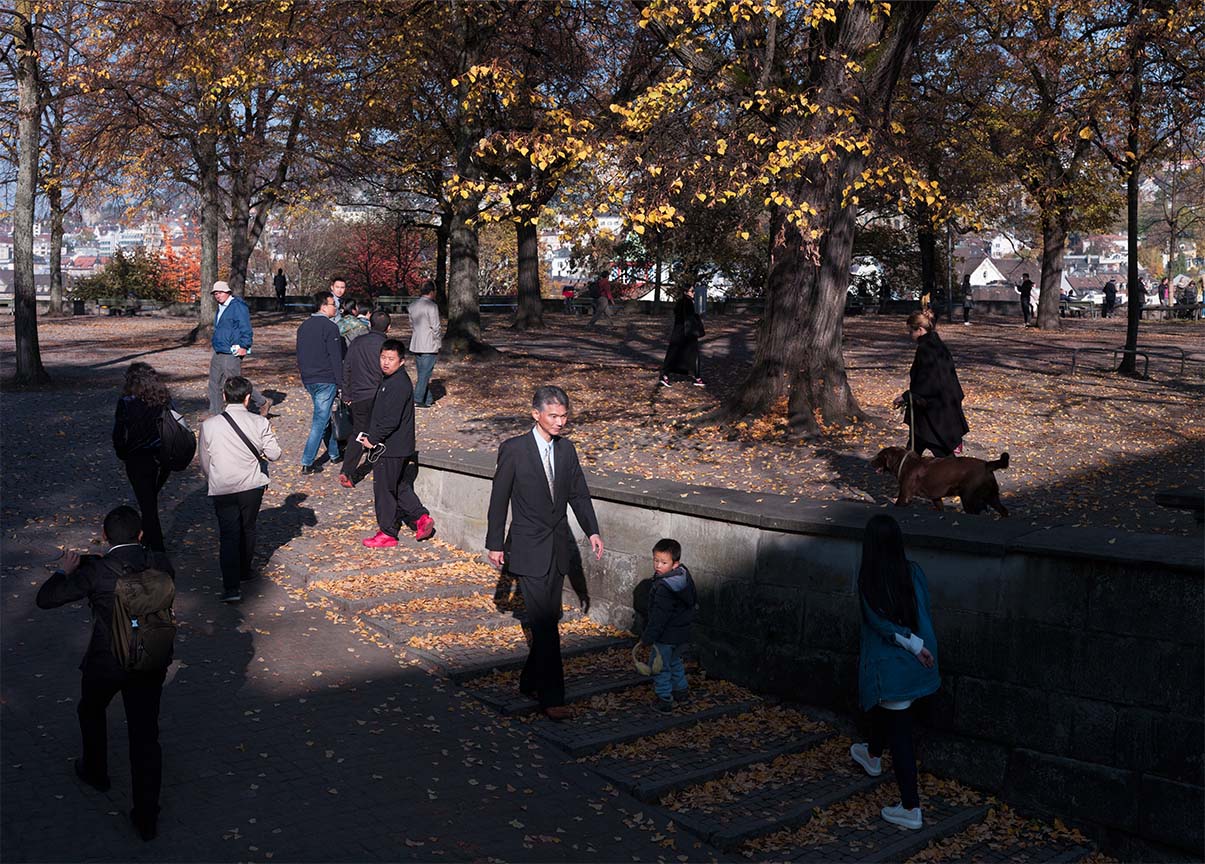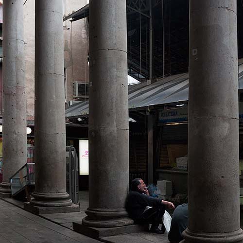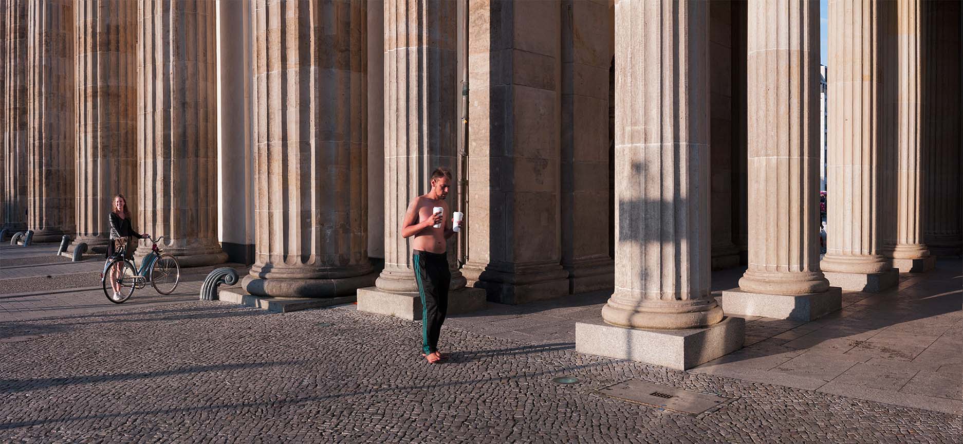 Historicals depicts contemporary people in historical settings. Like its sister series At Water it considers a type of threshold environment. It also hinges upon degrees of ambivalence. Enduring architectures are not the subject of Histoircals. They are backdrops that elevate nothing moments, shadows and smoke breaks and people smiling for other cameras.